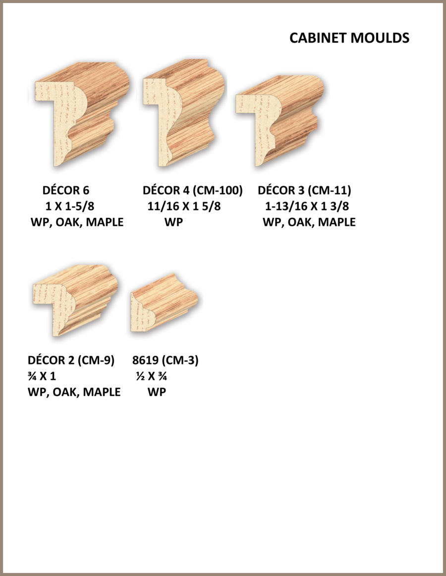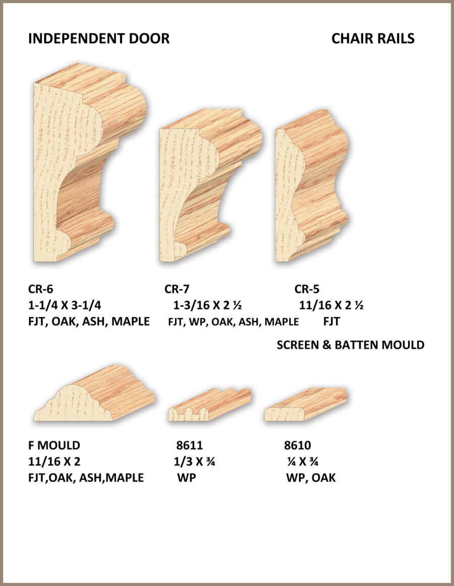 Our wide assortment of Mouldings, Door Casings and Chair Railing is very diverse. If you have